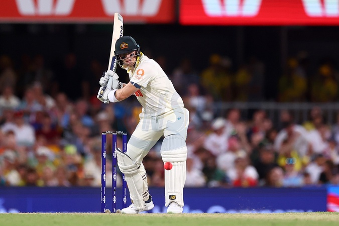 Steve Smith of Australia bats during the NRMA Insurance Ashes Second Test Day 2 Australia vs England at The Gabba, Brisbane Cricket Ground, Brisbane, Australia, 5th December 2025, Credit:Pat Hoelscher/News Images / Avalon