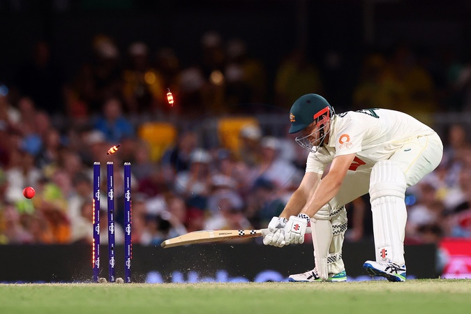 Cameron Green of Australia is bowled by Brydon Carse of England during the NRMA Insurance Ashes Second Test Day 2 Australia vs England at The Gabba, Brisbane Cricket Ground, Brisbane, Australia, 5th December 2025, Credit:Pat Hoelscher/News Images / Avalon