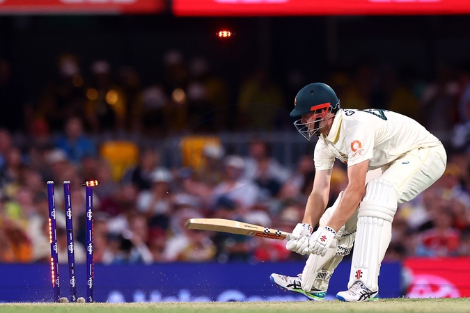 Cameron Green of Australia is bowled by Brydon Carse of England during the NRMA Insurance Ashes Second Test Day 2 Australia vs England at The Gabba, Brisbane Cricket Ground, Brisbane, Australia, 5th December 2025, Credit:Pat Hoelscher/News Images / Avalon