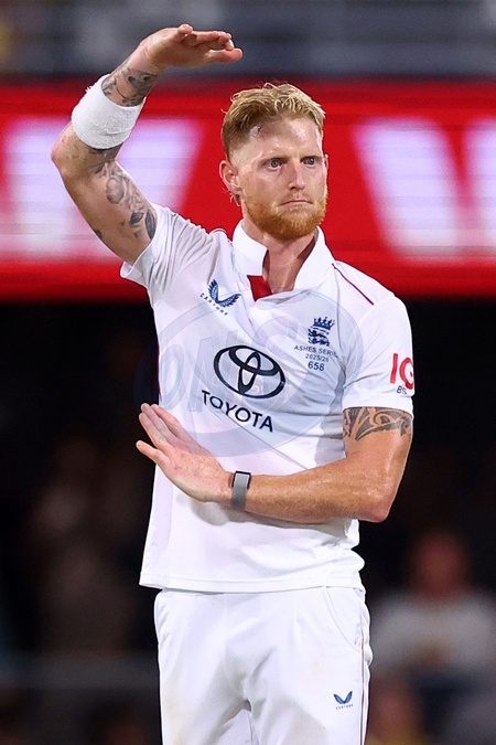 Ben Stokes of England reviews a decision during the NRMA Insurance Ashes Second Test Day 2 Australia vs England at The Gabba, Brisbane Cricket Ground, Brisbane, Australia, 5th December 2025, Credit:Pat Hoelscher/News Images / Avalon