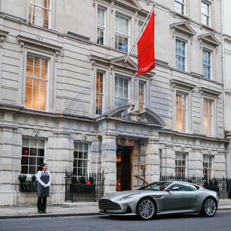 London, UK. 05th Dec, 2025. A rare charity auction item on view outside - The Aston Martin DB12, 'Goldfinger 007' Special Edition. Estimate: £200,000-300,000, marking a historic cinematic partnership between Aston Martin and the James Bond franchise. Christie's Groundbreakers: Icons of Our Time, part of Classic Week, will be on 11 December, 2025., Credit:Imageplotter / Avalon
