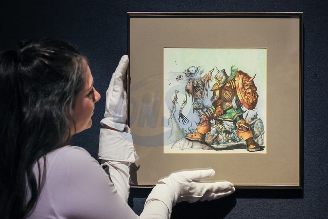 London, UK. 05th Dec, 2025. Christie's staff with Harry the Hammer. Original Warhammer cover artwork. Estimate: £300,000–400,000. Christie's Groundbreakers: Icons of Our Time, part of Classic Week, will be on 11 December, 2025., Credit:Imageplotter / Avalon