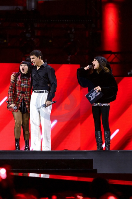 X Factor 2025 Finale in Piazza del Plebiscito, .in the photo: Giorgia, Rob, eroCaddeo Naples, Dec 4th 2025, Credit:AGF / Avalon