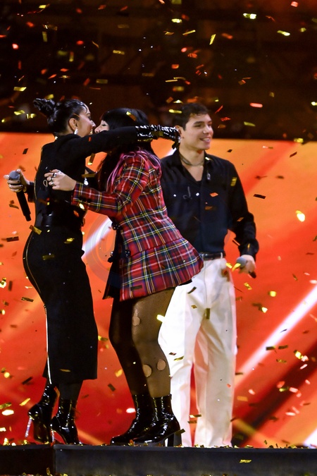 X Factor 2025 Finale in Piazza del Plebiscito, .in the photo: Paola Iezzi, Rob, eroCaddeo Naples, Dec 4th 2025, Credit:AGF / Avalon