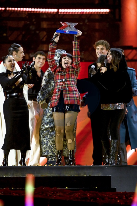 X Factor 2025 Final in Piazza del Plebiscito, .in the photo: Paola Iezzi, Rob, Giorgia, Achille Lauro, eroCaddeo, PierC Naples, Dec 4th 2025, Credit:AGF / Avalon