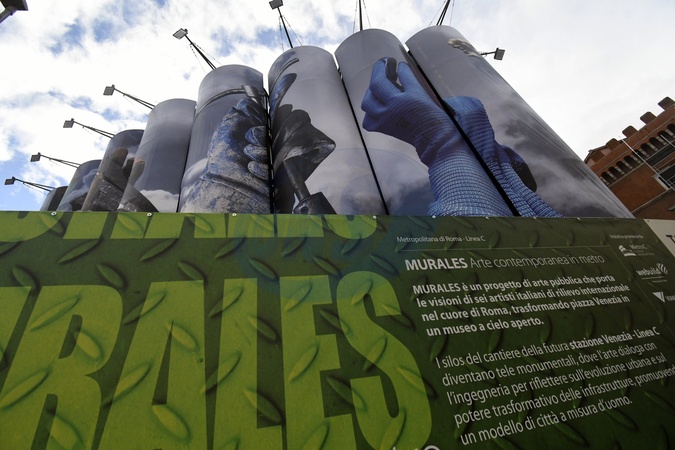 Tools by Elisabetta Benassi. A new work on the silos at the Metro C construction site.