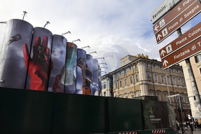 The third work in the artistic project "Murales. Contemporary Art in the Metro" is on display at the Stazione Venezia construction site. The new work is "Tools," by Elisabetta Benassi. Rome, December 5th, 2025, Credit:Mimmo Frassineti/AGF / Avalon