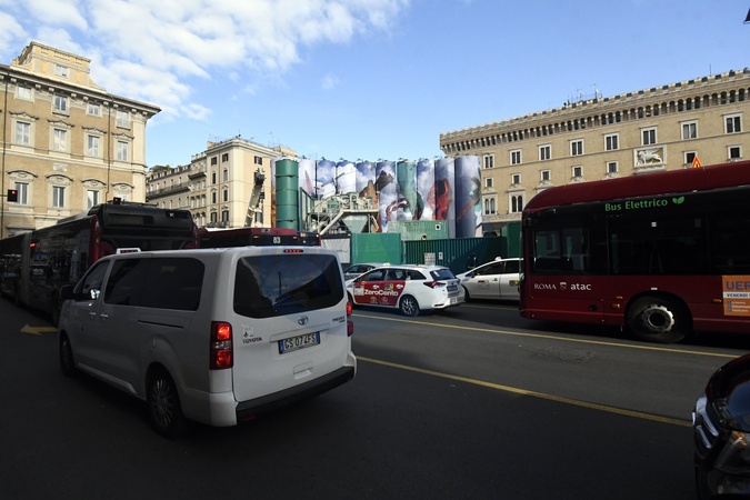 The third work in the artistic project "Murales. Contemporary Art in the Metro" is on display at the Stazione Venezia construction site. The new work is "Tools," by Elisabetta Benassi. Rome, December 5th, 2025, Credit:Mimmo Frassineti/AGF / Avalon