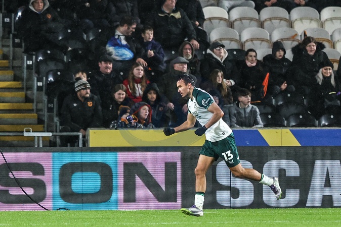 David Strelec of Middlesbrough celebrates his goal to make it 0-1 during the Sky Bet Championship match Hull City vs Middlesbrough at MKM Stadium, Hull, United Kingdom, 5th December 2025, Credit:Ae Cosgrove/News Images / Avalon