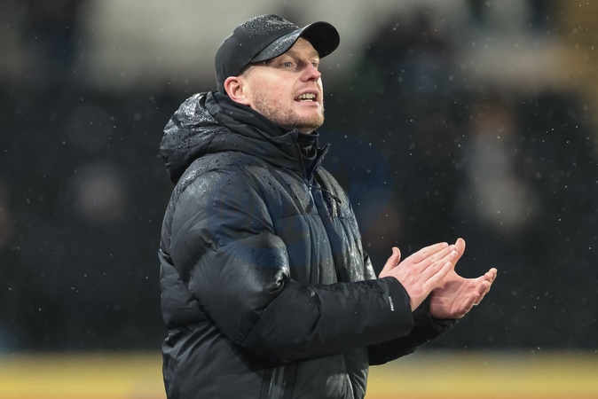 Kim Hellberg manager of Middlesbrough applauds his players as they win 1-4 during the Sky Bet Championship match Hull City vs Middlesbrough at MKM Stadium, Hull, United Kingdom, 5th December 2025, Credit:Mark Cosgrove/News Images / Avalon