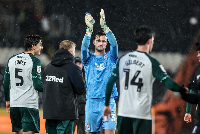 Middlesbrough goalkeeper Sol Brynn applauds the fans after the game during the Sky Bet Championship match Hull City vs Middlesbrough at MKM Stadium, Hull, United Kingdom, 5th December 2025, Credit:Ae Cosgrove/News Images / Avalon
