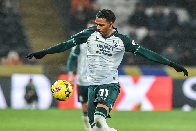 Morgan Whittaker of Middlesbrough controls the ball during the Sky Bet Championship match Hull City vs Middlesbrough at MKM Stadium, Hull, United Kingdom, 5th December 2025, Credit:Ae Cosgrove/News Images / Avalon