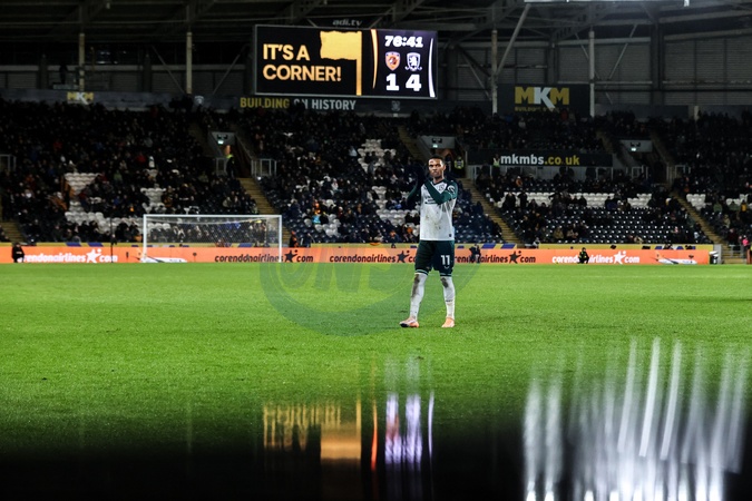 Morgan Whittaker of Middlesbrough applauds the travelling fans as Middlesbrough prepare for a corner during the Sky Bet Championship match Hull City vs Middlesbrough at MKM Stadium, Hull, United Kingdom, 5th December 2025, Credit:Ae Cosgrove/News Images / Avalon