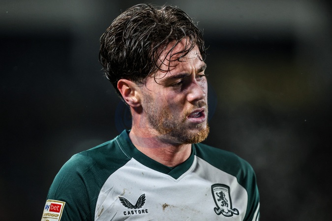 Hayden Hackney of Middlesbrough during the Sky Bet Championship match Hull City vs Middlesbrough at MKM Stadium, Hull, United Kingdom, 5th December 2025, Credit:Ae Cosgrove/News Images / Avalon