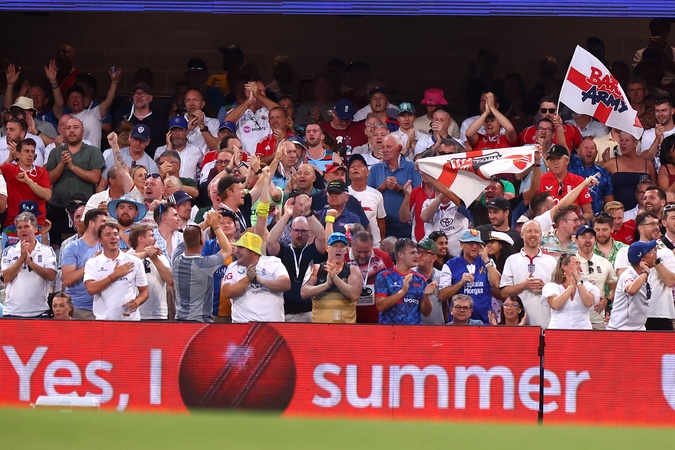 The Barmy Army are seen during Day 3 of the Second Test in the NRMA Insurance Ashes Series Australia vs England at The Gabba, Brisbane Cricket Ground, Brisbane, Australia, 6th December 2025, Credit:Patrick Hoelscher/News Images / Avalon