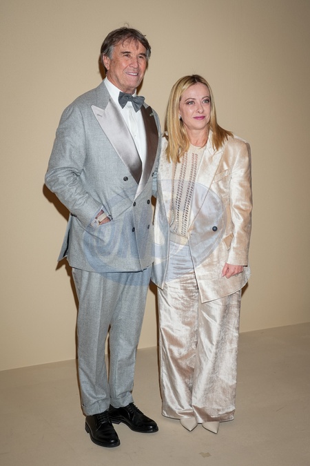Brunello Cucinelli and Italian Prime Minister Giorgia Meloni attend the World Premiere of "Brunello, Il Visionario Garbato" at Cinecittà Studios in Rome, Italy on 04 December 2025., Credit:Stefano Costantino TTL / Avalon