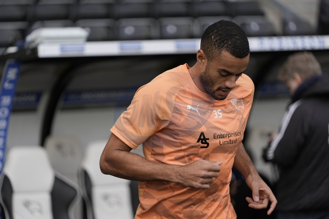 Curtis Nelson of Derby County walks out to warm up during the Sky Bet Championship match Derby County vs Leicester City at Pride Park Stadium, Derby, United Kingdom, 6th December 2025, Credit:Maynard Manyowa/News Images / Avalon