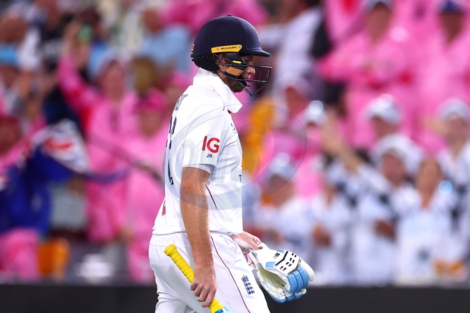 Joe Root of England is dismissed during Day 3 of the Second Test in the NRMA Insurance Ashes Series Australia vs England at The Gabba, Brisbane Cricket Ground, Brisbane, Australia, 6th December 2025, Credit:Patrick Hoelscher/News Images / Avalon