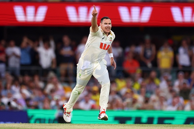 Scott Boland of Australia celebrates the dismissal of Harry Brook of England during Day 3 of the Second Test in the NRMA Insurance Ashes Series Australia vs England at The Gabba, Brisbane Cricket Ground, Brisbane, Australia, 6th December 2025, Credit:Patrick Hoelscher/News Images / Avalon