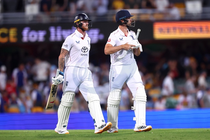 Ben Stokes of England and Will Jacks of England exit the field at stumps during Day 3 of the Second Test in the NRMA Insurance Ashes Series Australia vs England at The Gabba, Brisbane Cricket Ground, Brisbane, Australia, 6th December 2025, Credit:Patrick Hoelscher/News Images / Avalon