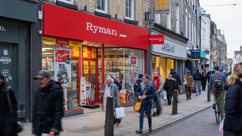 Rymans shop in Sydney street, Cambridge, Cambridgeshire, UK. 05 December 2025., Credit:Mark fairhurst / Avalon