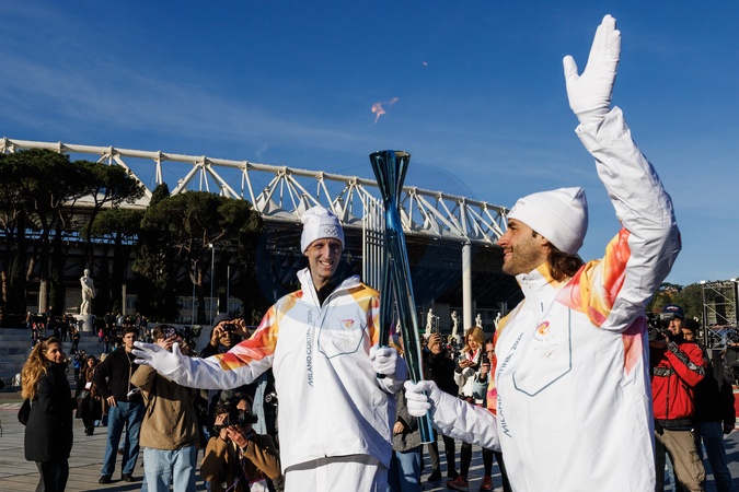 The Olympic Torch departs Rome for the 2026 Milan-Cortina Winter Olympics.