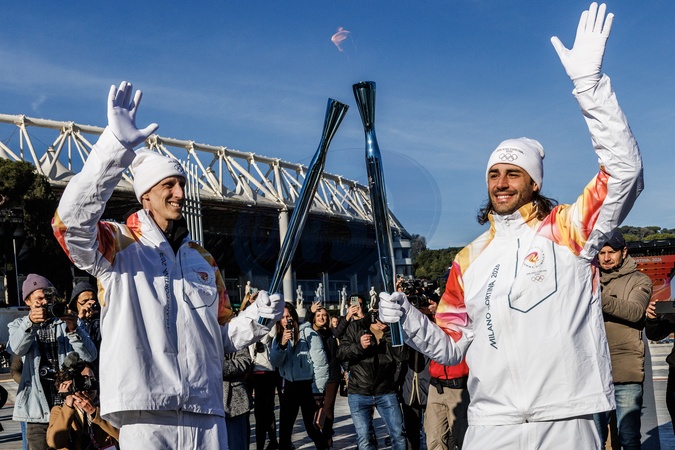 The Olympic Torch departs Rome for the 2026 Milan-Cortina Winter Olympics.