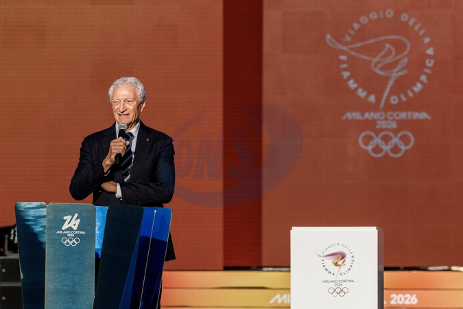 06/12/2025 Rome, The Olympic Torch leaves Rome for the 2026 Milan Cortina Winter Olympics. Pictured is CONI President Luciano Bonfiglio., Credit:Francesco Fotia / Avalon