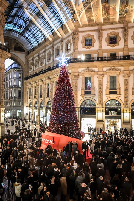 05/12/2025 Milan, Galleria Vittorio Emanuele II, lighting of the Christmas tree and the octagonal vault sponsored by Lenovo, Credit:Nicola Marfisi / Avalon