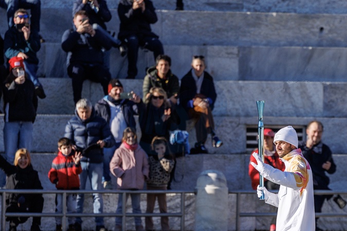 The Olympic Torch departs Rome for the 2026 Milan-Cortina Winter Olympics.