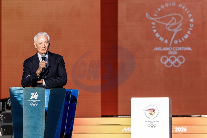 06/12/2025 Rome, The Olympic Torch leaves Rome for the 2026 Milan Cortina Winter Olympics. Pictured is CONI President Luciano Bonfiglio., Credit:Francesco Fotia / Avalon