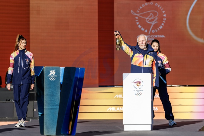 The Olympic Torch departs Rome for the 2026 Milan-Cortina Winter Olympics.
