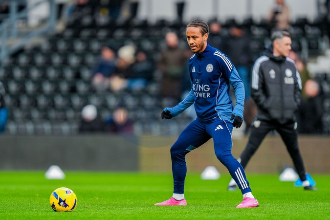 Bobby Decordova-Reid of Leicester City warms up during the Sky Bet Championship match Derby County vs Leicester City at Pride Park Stadium, Derby, United Kingdom, 6th December 2025, Credit:Maynard Manyowa/News Images / Avalon