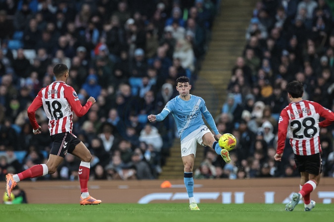 Phil Foden of Manchester City controls the ball during the Premier League match Manchester City vs Sunderland at Etihad Stadium, Manchester, United Kingdom, 6th December 2025, Credit:Mark Cosgrove/News Images / Avalon