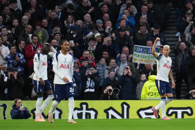 Richarlison of Tottenham Hotspur celebrates 1-0 lead during the Premier League match Tottenham Hotspur vs Brentford at Tottenham Hotspur Stadium, London, United Kingdom, 6th December 2025, Credit:Harvey Murphy/News Images / Avalon