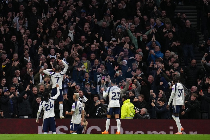 Xavi Simons of Tottenham Hotspur celebrates first Tottenham Hotspur goal to make it 2-0 during the Premier League match Tottenham Hotspur vs Brentford at Tottenham Hotspur Stadium, London, United Kingdom, 6th December 2025, Credit:Harvey Murphy/News Images / Avalon