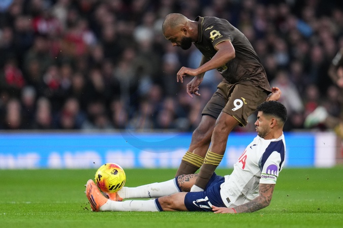 Cristian Romero of Tottenham Hotspur fouls Igor Thiago of Brentford during the Premier League match Tottenham Hotspur vs Brentford at Tottenham Hotspur Stadium, London, United Kingdom, 6th December 2025, Credit:Harvey Murphy/News Images / Avalon