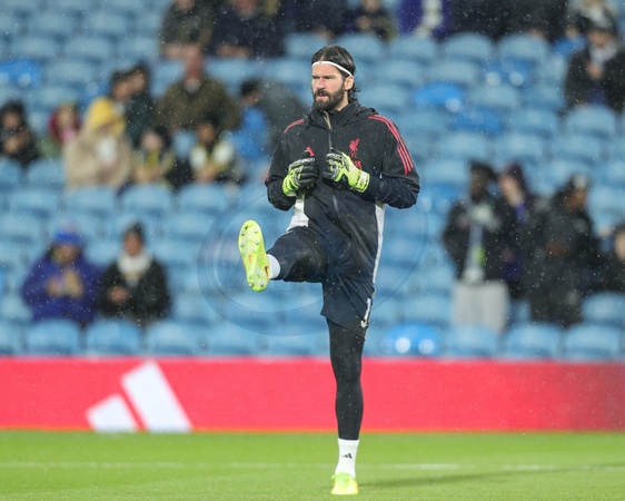 Liverpool goalkeeper Alisson Becker in the pregame warmup session during the Premier League match Leeds United vs Liverpool at Elland Road, Leeds, United Kingdom, 6th December 2025, Credit:Richard Bierton/News Images / Avalon