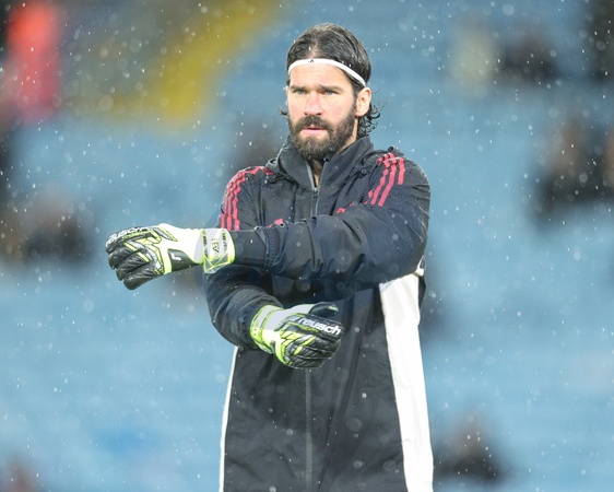 Liverpool goalkeeper Alisson Becker in the pregame warmup session during the Premier League match Leeds United vs Liverpool at Elland Road, Leeds, United Kingdom, 6th December 2025, Credit:Richard Bierton/News Images / Avalon