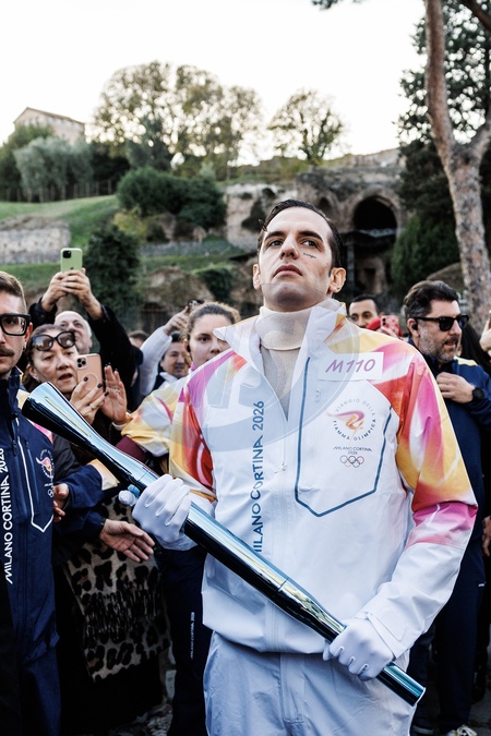 The Olympic Torch departs Rome for the 2026 Milan-Cortina Winter Olympics.