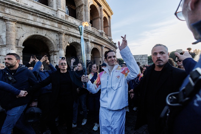 The Olympic Torch departs Rome for the 2026 Milan-Cortina Winter Olympics.