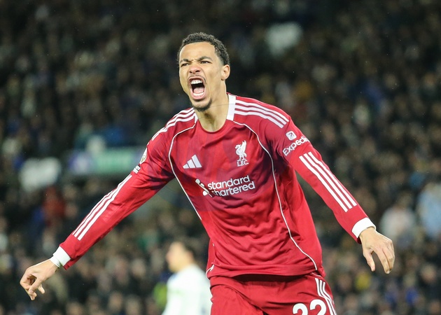 Hugo Ekitike of Liverpool celebrates his goal to make it 0-1 during the Premier League match Leeds United vs Liverpool at Elland Road, Leeds, United Kingdom, 6th December 2025, Credit:Richard Bierton/News Images / Avalon