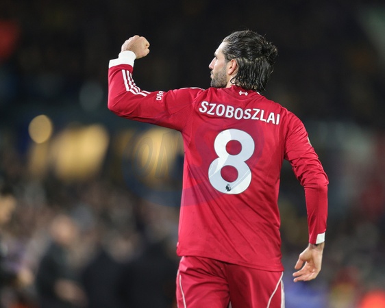 Dominik Szoboszlai of Liverpool celebrates his goal to make it 2-3 during the Premier League match Leeds United vs Liverpool at Elland Road, Leeds, United Kingdom, 6th December 2025, Credit:Richard Bierton/News Images / Avalon