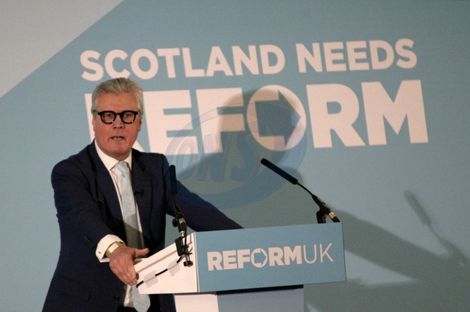 Malcolm Offord addresses a Reform UK rally in Falkirk, United Kingdom, 06 December 2025., Credit:William Kemmett / Avalon