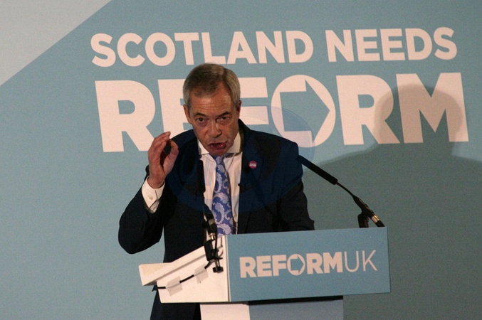 Reform UK Leader Nigel Farage addresses a rally in Falkirk, United Kingdom, 06 December 2025., Credit:William Kemmett / Avalon