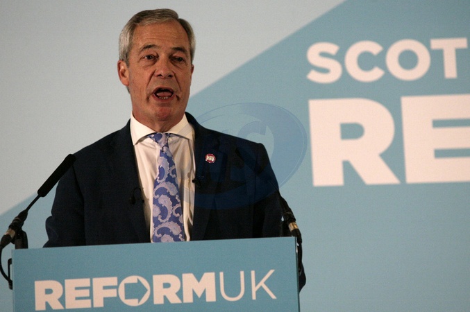 Reform UK Leader Nigel Farage addresses a rally in Falkirk, United Kingdom, 06 December 2025., Credit:William Kemmett / Avalon