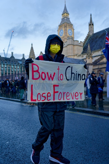 London, UK. 06th December 2025. Protest against China's proposed mega-embassy. The march started in Piccadilly Circus passing Whitehall, Westminster and ended at the Home Office HQ.The aim of the protest is to pressure Secretary of State, Steve Reed MP into rejecting China's proposed mega-Embassy in London., Credit:Aldo Ciarrocchi / Avalon