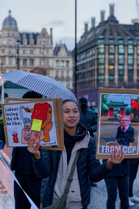 London, UK. 06th December 2025. Protest against China's proposed mega-embassy. The march started in Piccadilly Circus passing Whitehall, Westminster and ended at the Home Office HQ.The aim of the protest is to pressure Secretary of State, Steve Reed MP into rejecting China's proposed mega-Embassy in London., Credit:Aldo Ciarrocchi / Avalon