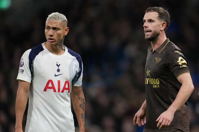 Richarlison of Tottenham Hotspur and Jordan Henderson of Brentford during the Premier League match Tottenham Hotspur vs Brentford at Tottenham Hotspur Stadium, London, United Kingdom, 6th December 2025, Credit:Harvey Murphy/News Images / Avalon