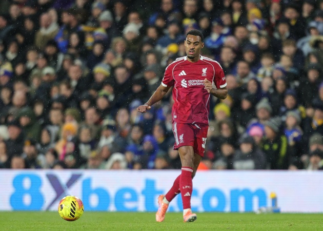 Ryan Gravenberch of Liverpool passes the ball during the Premier League match Leeds United vs Liverpool at Elland Road, Leeds, United Kingdom, 6th December 2025, Credit:Richard Bierton/News Images / Avalon
